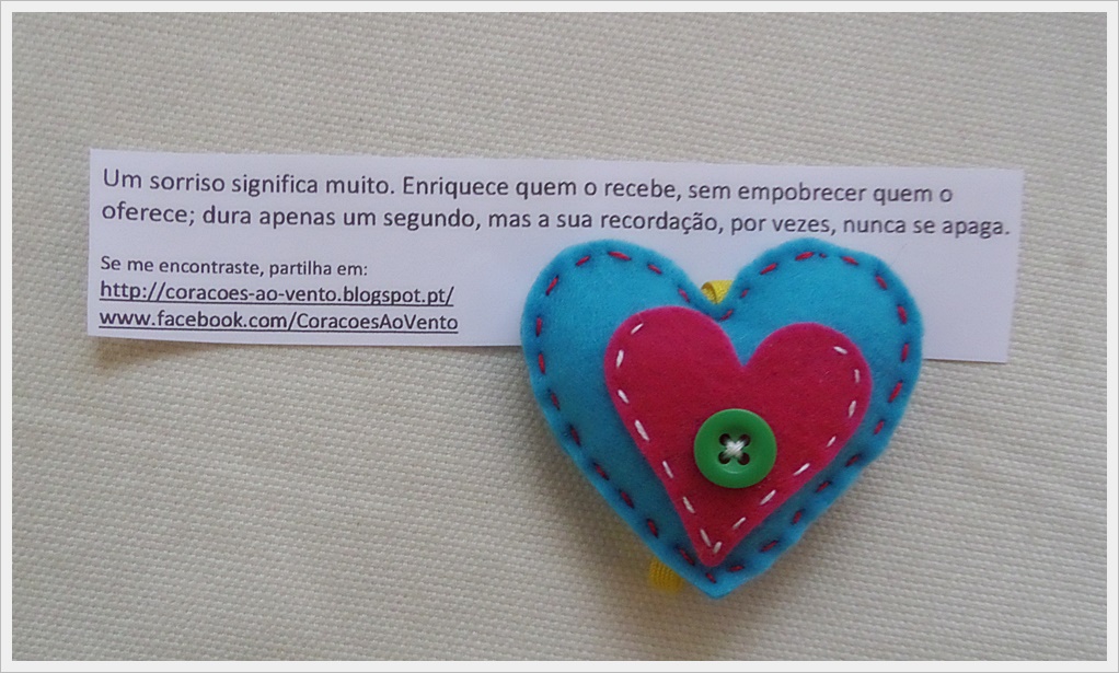 E hoje, que o vento deu tréguas e o sol até deu um ar da sua graça, embora a temperatura continue muito baixa, o Coração Valentim lá ganhou coragem para sair da mala e cumprir o seu objetivo.